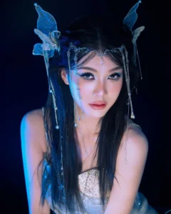 แต่กลับดูชัดเจน และ มีจุดเด่น ไปจนถึงการแต่งกายของเธอ ที่สร้างความโดดเด่น อย่างชัดเจน ชุดนี้ไม่ได้เพียงแค่เผยให้เห็นรูปร่างที่ได้สัดส่วน แต่ยังสะท้อนบุคลิกที่กล้าแสดงออก และ มั่นใจ ในตัวเอง การเลือกใช้สีดำเป็นหลักให้ความรู้สึกแข็งแรง สุขุม และ มีพลัง ขณะที่สีแดงเพิ่มความเร่าร้อน และ ความมีชีวิตชีวา ทำให้ชุดดูมีเอกลักษณ์ และ น่าจดจำ แถมท่าทางการนั่งของเธอดูผ่อนคลาย